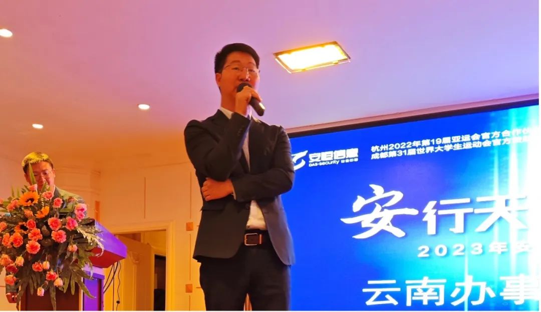 安恒信息作为一家新时代网络安全产品和服务的提供商,一直秉承合作共享的理念。始终追求为合作伙伴发展注入新动能,为用户带来更高的价值体验。安恒信息生态合作业务中心西区总监桂明明为合作伙伴带来了2023年安恒信息渠道政策介绍。安恒信息借助渠道认证平台,为有才能的伙伴提供深入发展的机会,不留余力,全力以赴地推进生态合作伙伴综合实力的提升,共同捍卫网络安全。活动现场,安恒信息的优质合作伙伴之一,云南区域总代理毕师伟也带来了总代合作经验分享。