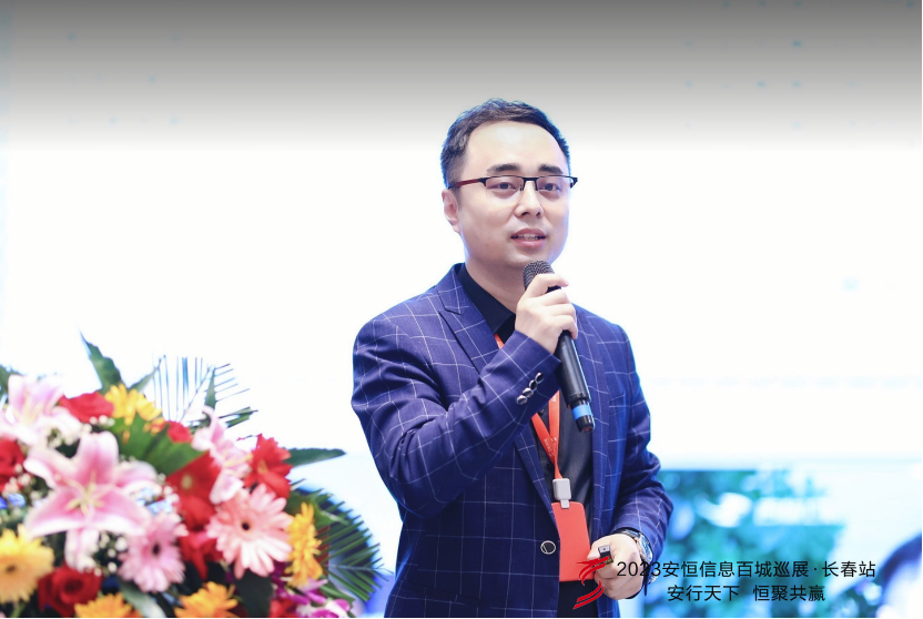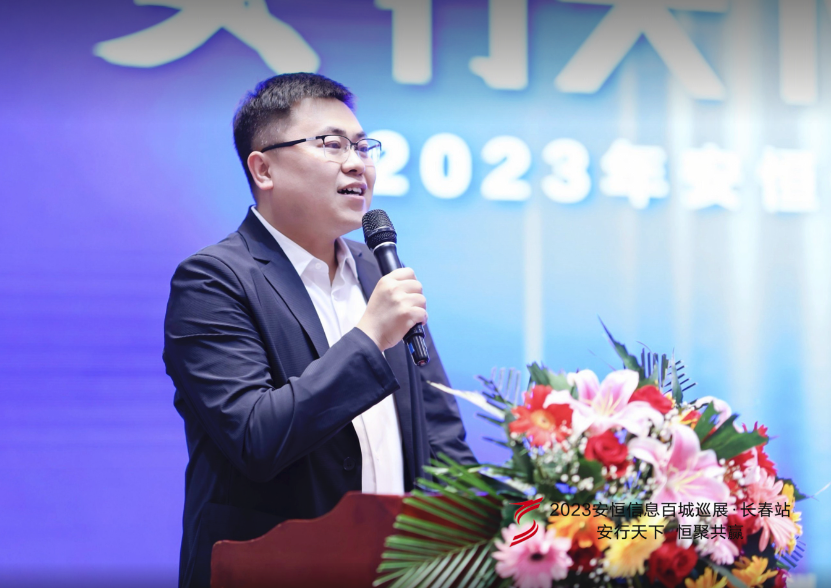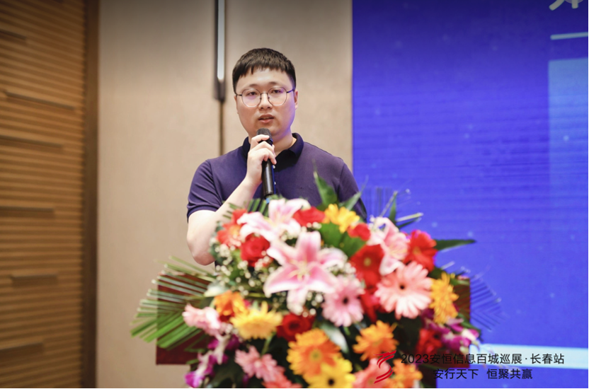 随后,安恒信息长春办事处主任陈晖带来了安恒信息吉林区域三年发展的介绍,特别强调了扎根本地要做好的三个模块——安全运营中心、网络安全人才培养基地、车联网安全全国总基地,安恒信息始终专注服务价值,成就最终客户。陈晖还分享了安恒信息长春城市智能体安全运营项目,该项目荣获2022年安全守卫者计划 “安全运营专题”优秀案例,协助长春市信息中心完成安全实战化应急演练,规划建设吉林省网络空间安全运营基地,无不成为护航数字化安全的最佳实践。