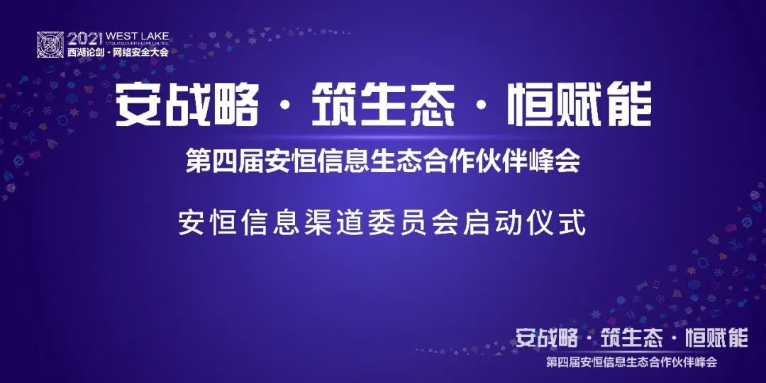 4月23日,以“安战略·筑生态·恒赋能”为主题的第四届安恒信息生态合作伙伴峰会在杭州顺利召开。本次大会首次采用线下举办+线上定向渠道群直播的形式,千余家签约合作伙伴共同参与“云端盛会”。同时,第一届渠道顾问委员会启动仪式也在当日举行,标志着安恒信息与合作伙伴沟通交流机制进入新的发展阶段。