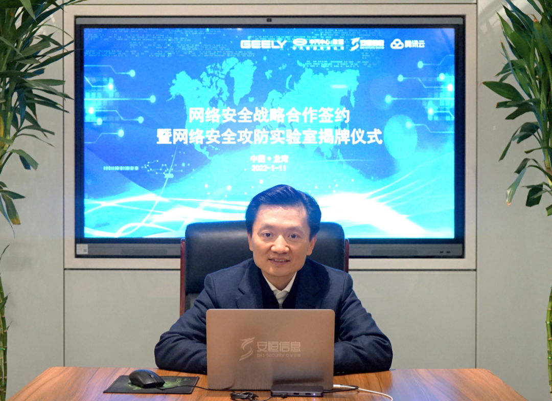 本次签约和揭牌仪式以线上线下联动的形式举行,吉利汽车研究院院长康国旺、副院长任向飞,腾讯智慧出行副总裁钟学丹、腾讯安全策略发展中心总经理吕一平,中汽数据总经理冯屹,安恒信息董事长范渊、安恒信息总经理吴卓群等共同出席和见证了签约和揭牌仪式。
