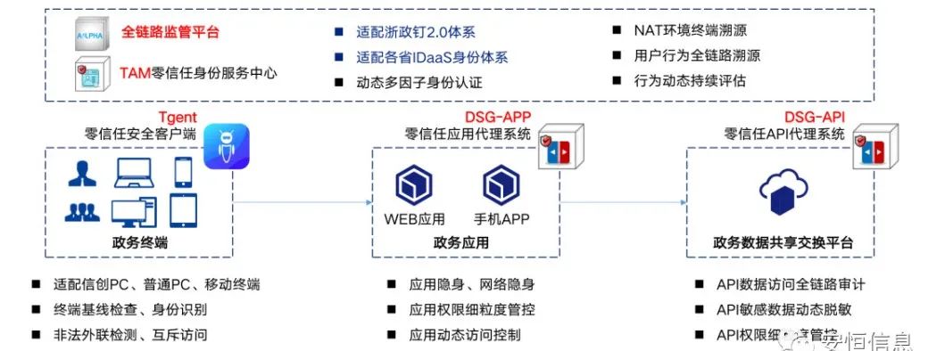 该方案应用于政府、企业、金融等行业场景,为用户海量的API及通过API开放的共享数据实施防护,实现“未认证不能访问、已认证不能违规访问”,保障API访问的身份、权限可控、数据可视。