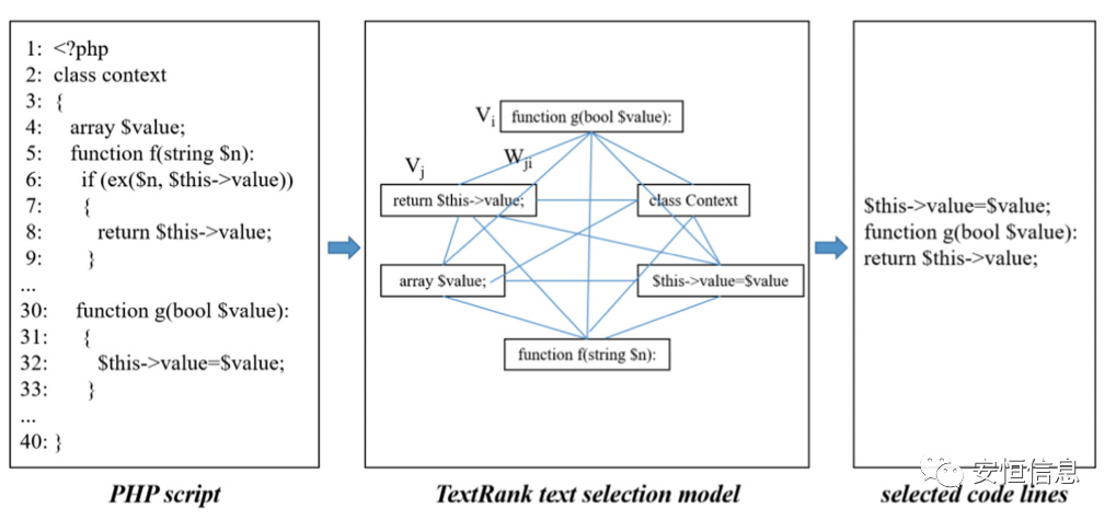 面对长文本,论文采用了textrank模型来筛选重要语义信息,该算法可以通过相似度加权迭代的方式对代码进行重要性排序。
