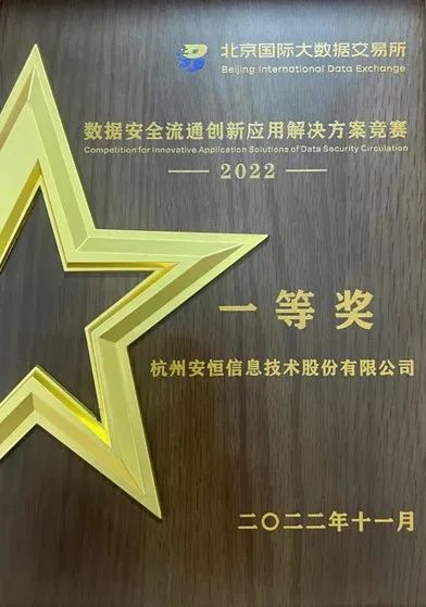 2022年11月,北京市经济和信息化局指导、北京国际大数据交易所主办的“数据安全流通创新应用解决方案竞赛”中,安恒信息数据安全岛隐私计算方案获得一等奖。