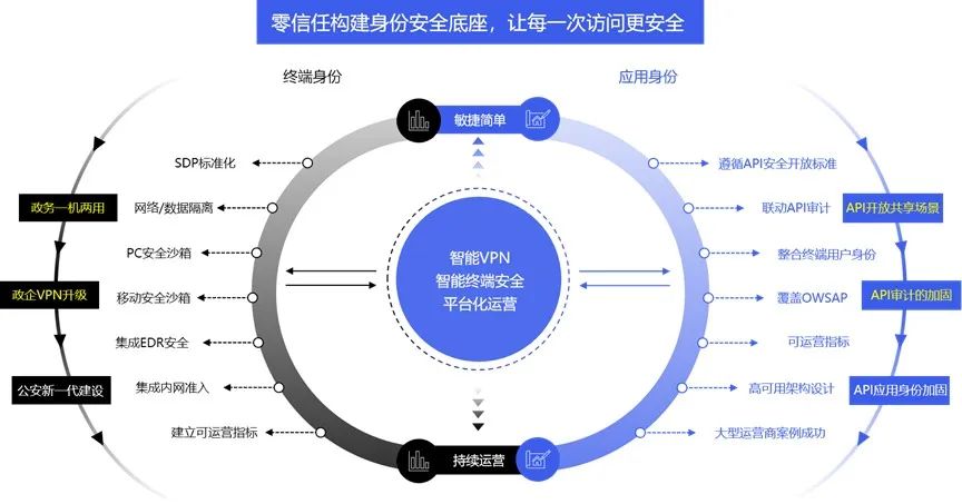 总体而已,安恒信息提出以零信任架构为核心,结合独有的、丰富的攻防对抗经验,为企业和组织打造了全新的主动升维信任体系,全面遵从零信任技术进行规划和设计,辅以业务控制、控制平面、身份认证等策略,助力企业真正落地零信任理念。借助于零信任,企业网络安全体系将更加贴合数字化业务,满足其内在安全诉求,同时覆盖企业数据全生命周期,为整体IT环境提供内在安全能力。同时,以智能化降低安全体系的复杂度,给企业一个好用又简单的解决方案。