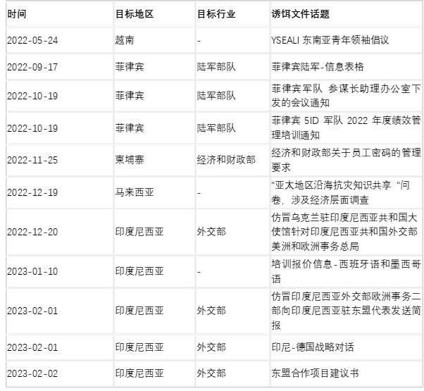 2022年底,安恒信息猎影实验室率先发现这一新APT组织,并将该组织命名为暗石(Saaiwc Group)。猎影实验室在威胁狩猎中持续追踪到这一组织针对东南亚多国财政、军事、外交等部门的攻击活动。