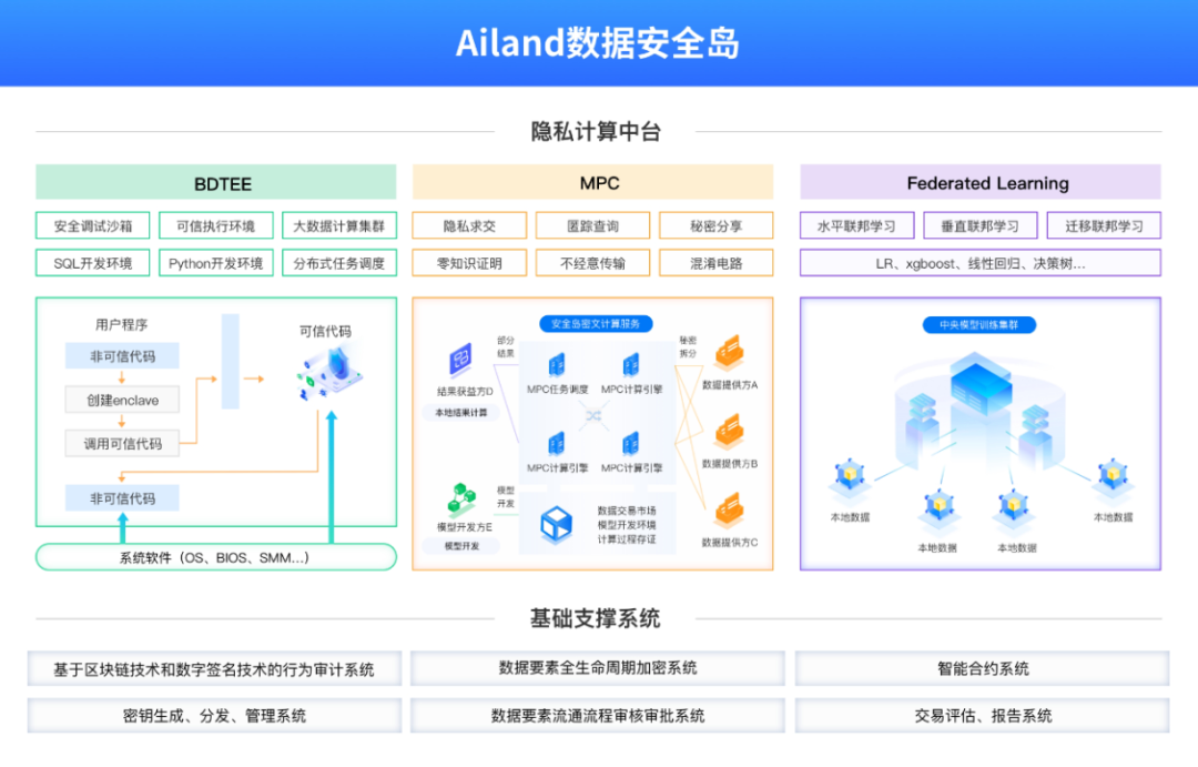 安恒信息首席科学家、高级副总裁刘博表示:“我们从2019年就已经开始着手布局隐私计算技术,目前已经实现了安全多方计算,联邦学习和可信执行环境三大技术平台的全覆盖。