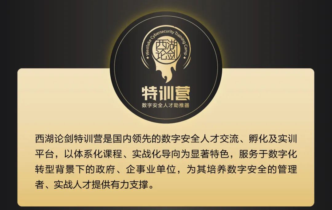 在2023年西湖论剑·网络安全大会即将召开之际,西湖论剑安全特训营作为大会特色项目之一,率先启动招募!西湖论剑安全特训营是国内领先的数字安全人才交流、孵化及实训平台,以体系化课程、实战化导向为显著特色,服务于数字化转型背景下的政府、企事业单位,为其培养数字安全的管理者、实战人才提供有力支撑。