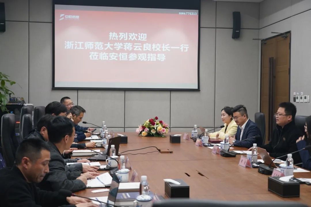 范渊董事长与蒋云良校长一行举行会谈。蒋云良校长对安恒信息关心支持浙江师范大学发展表达了感谢,对安恒信息积极响应国家战略、参与杭州亚运会网络安全保障给予了高度认可,并对双方后续进一步深化交流合作,尤其是加强计算机学科建设、专业发展、学生实习、博士后进站等寄予了厚望。