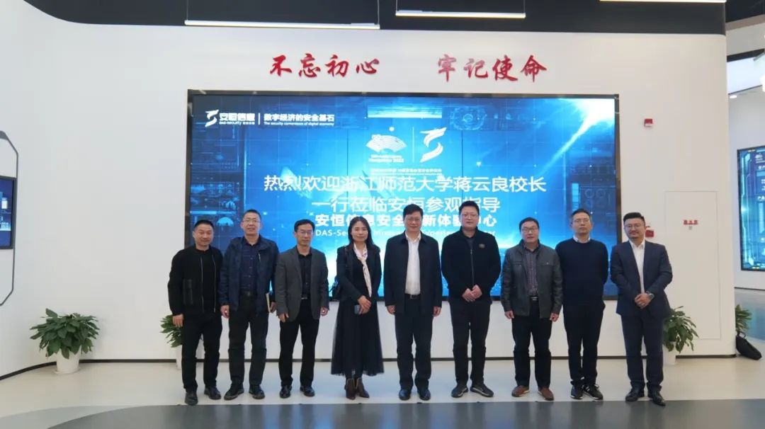 3月7日,浙江师范大学校长蒋云良一行莅临安恒信息参观指导,并就数字化人才培养、创新创业教育等进行深入交流。安恒信息董事长范渊,安恒信息首席人才官、高级副总裁苗春雨等进行热情接待。