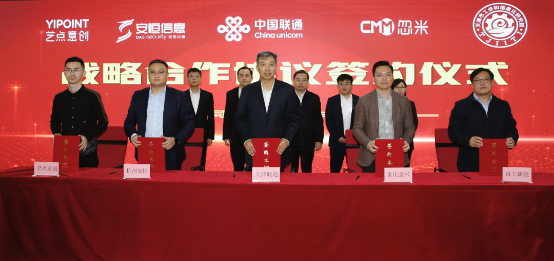 天津市工信局党组书记、局长尹继辉,天津市工业和信息化局党组成员、副局长周胜昔,天津联通党委书记、总经理陈海波,天津联通党委委员、副总经理张明山,安恒信息副总裁、运营商行业部总裁卢小波等出席签约仪式,天津联通产业互联网研究院院长张守华,安恒信息天津分公司总经理石立峰代表双方签署战略合作协议。
