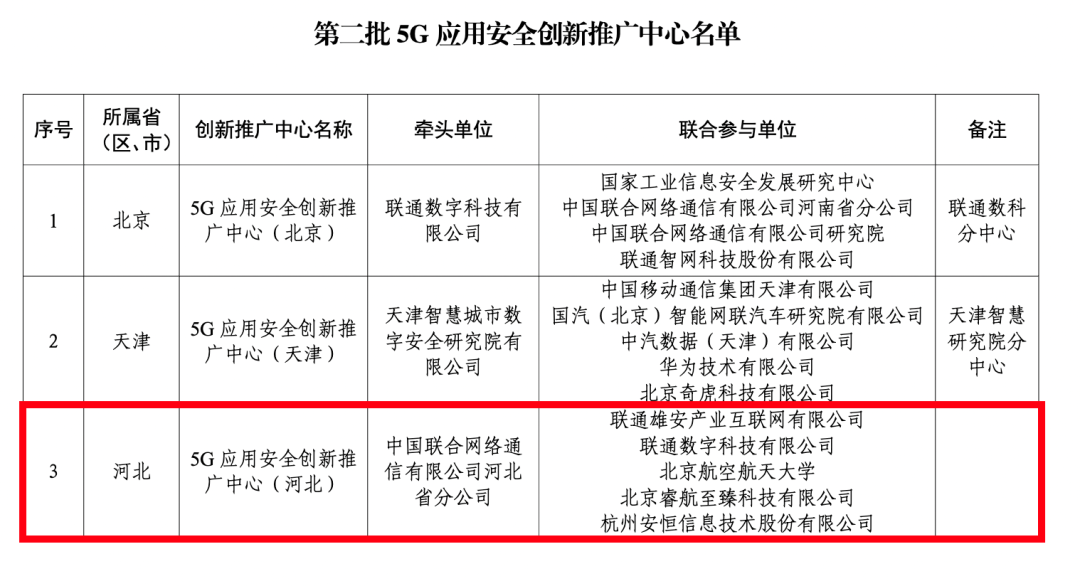 5G应用安全创新推广中心(河北)由中国联合网络通信有限公司河北省分公司牵头,联合安恒信息等单位共同参与。将立足河北、面向京津冀、辐射全国,通过构建产学研用一体化的生态体系,打造技术先进、产品丰富、应用广泛、服务完善的综合性5G应用安全创新推广中心。同时,将结合工业互联网、智慧城市等行业应用场景,主要围绕5G安全解决方案的制定及复制推广、5G应用安全服务、5G应用安全产品的开发等方面进行示范性建设,构建5G应用安全的推广中心。