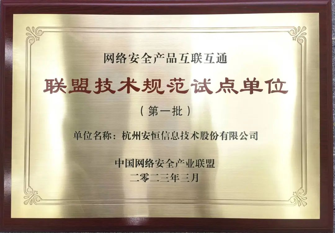 近日,由中国网络安全产业联盟(CCIA)主办的“2023年CCIA网络安全技术应用专题研讨会”在北京成功举办。安恒信息凭借在网络安全产品互联互通工作的沉淀以及出色表现,荣获网络安全产品互联互通联盟技术规范试点单位(第一批)。