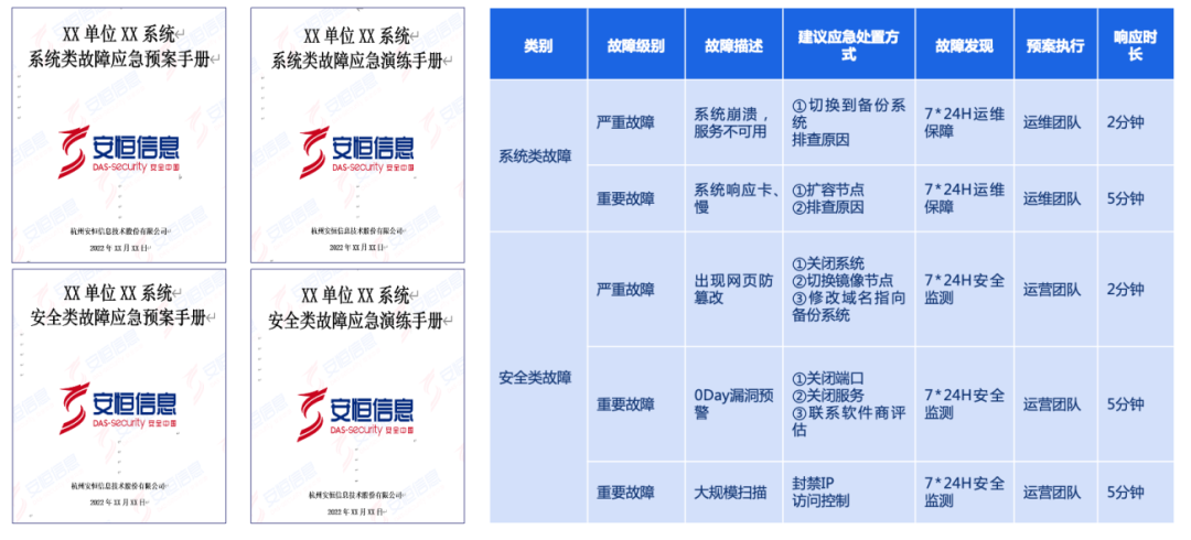 应急预案:建立健全应急预案制度与方案,提高对突发事件的组织协调和应急处置能力,满足突发情况下系统稳定运行的需要。