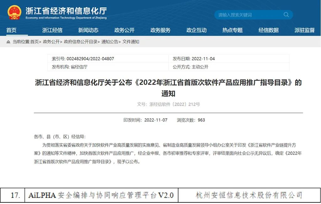 安全编排,协同响应!安恒这款产品荣登2022浙江省首版次软件目录