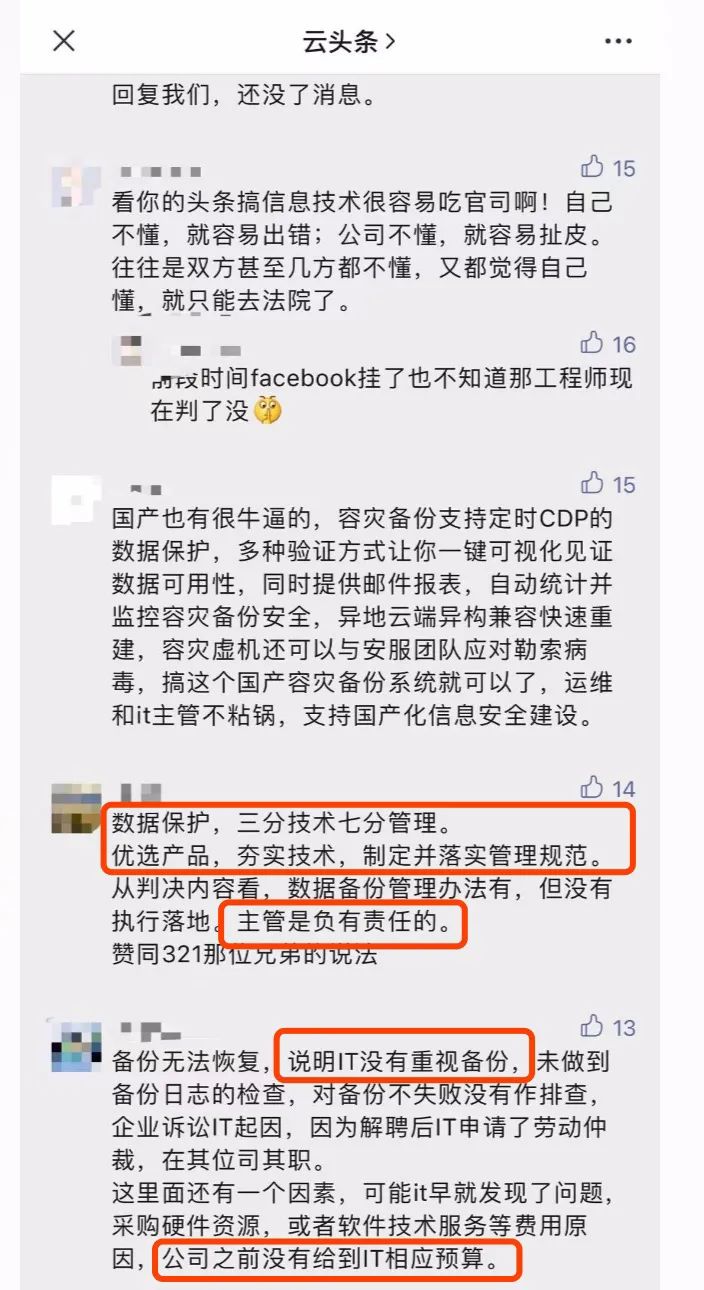 针对该事件,网友们也展开了热烈的讨论,大家纷纷看到了事件中的关键利害关系:运维不受重视、企业投入不足、IT主管失职等问题是导致事件发生的主要原因。