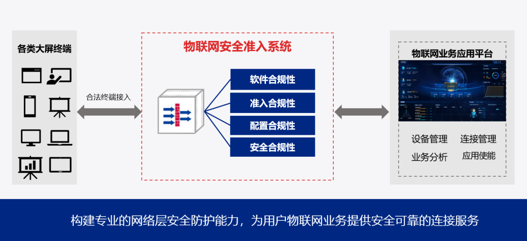 对于显示屏终端的合规性检测,通过准入合规性,软件合规性,配置合规性等多维度进行检测,及时发现内网显示屏终端的违规共享及设备仿冒等异常行为,通过智能准入和合规性检测,全面实现显示屏终端的安全准入控制。