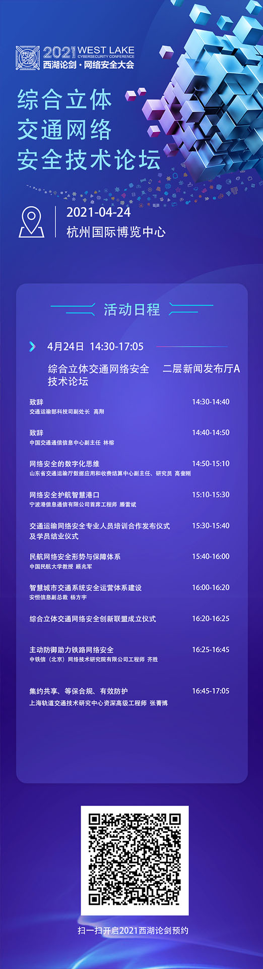 我们正向着交通强国稳步前行,关于未来交通我们该如何建设?4月24日,西湖论剑·网络安全大会敬请期待!