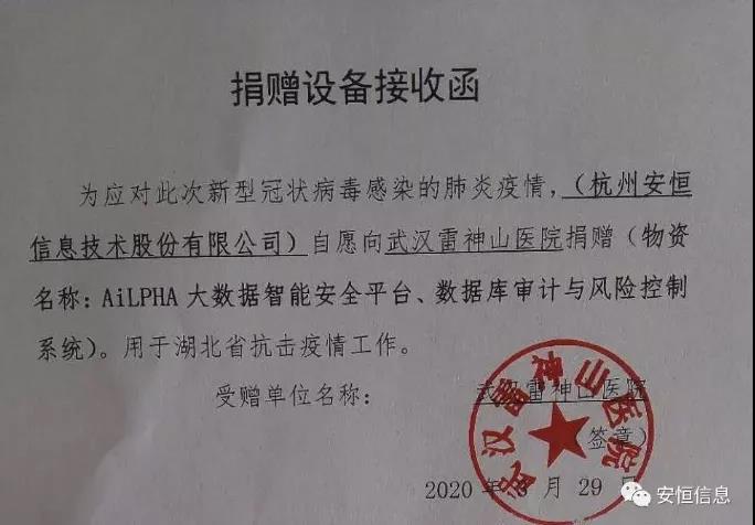 在不见硝烟的“战疫”中,安恒信息积极在前线沟通协调,针对雷神山医院的安全需求,向其提供了多台AiLPHA大数据智能安全平台、数据库审计与风险控制系统,并派出工程师赴一线全程帮助医院安装调试。为雷神山医院在网络安全风险监测、全局安全态势感知以及医疗数据安全等方面竖起安全“屏障”,能有效保障雷神山医院业务平稳、安全的运行,让疫情防控安全又精准。