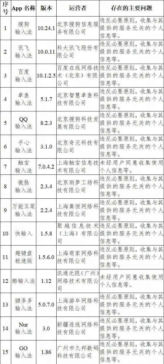 5月1日,国家网信办发布了《关于输入法等33款App违法违规收集使用个人信息情况的通报》。其中,检测发现搜狗输入法、讯飞输入法、高德地图、百度地图等33款常见类型公众大量使用的App违法违规收集使用个人信息。