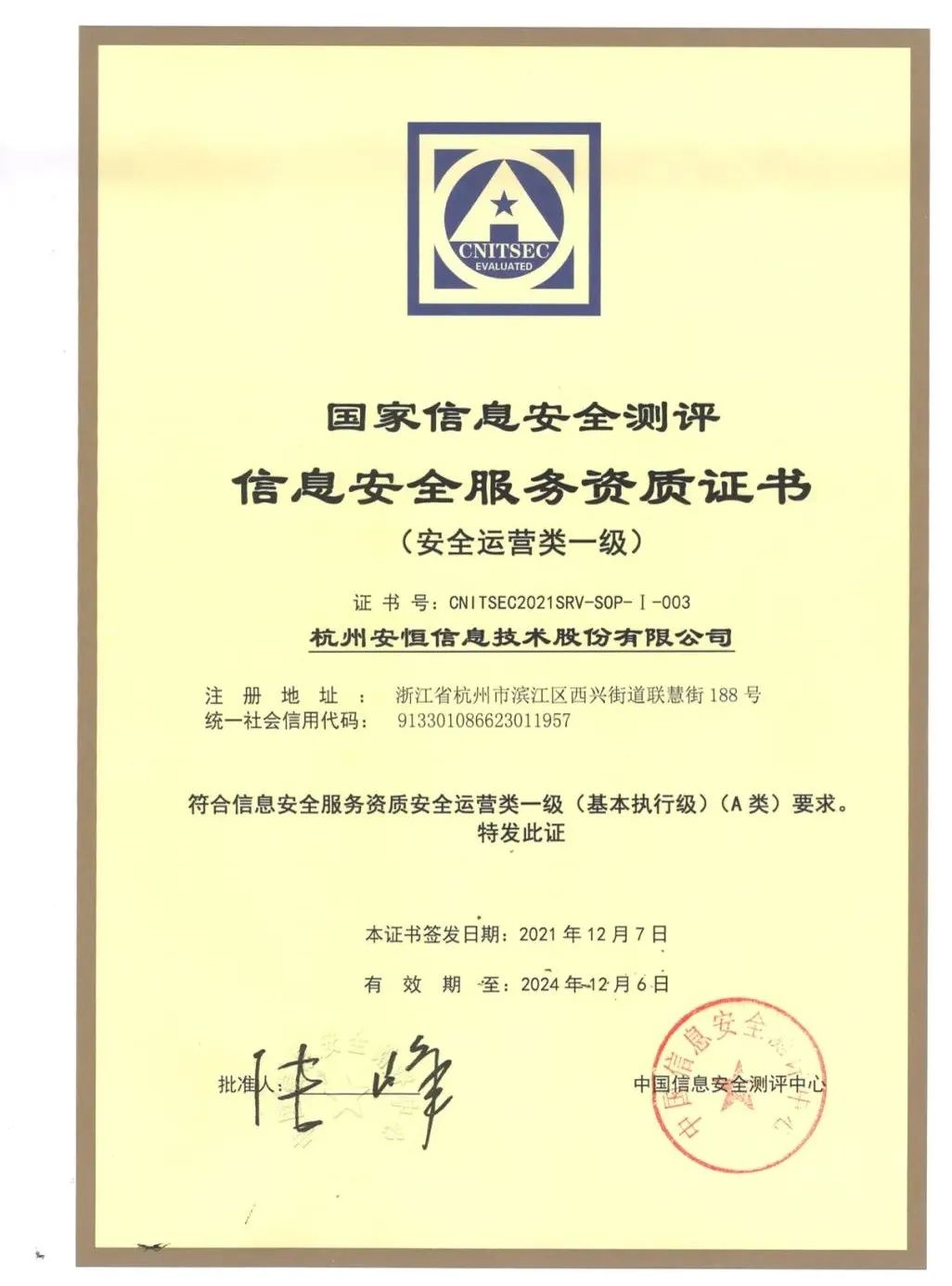 官宣|安恒信息成为首批国家级安全运营类一级网络安全企业