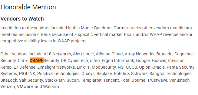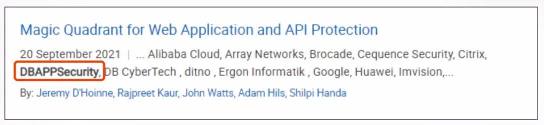2021年在Gartner《Web应用防火墙魔力象限》报告中被荣誉提及