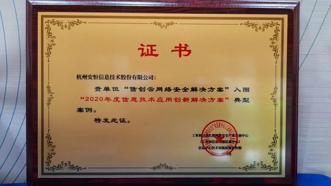 6月25日,由工业和信息化部网络安全产业发展中心、福建省数字福建建设领导小组办公室、厦门市人民政府、信息中心技术创新应用协作组联合主办,厦门市工业和信息化局承办的《2021年信息技术应用创新产业发展高峰论坛暨2020年信息技术应用创新典型解决方案发布会》成功在厦门举办,安恒信息信创云网络安全解决方案凭借专业的技术和服务能力,入围了“2020年度信息技术应用创新解决方案”。