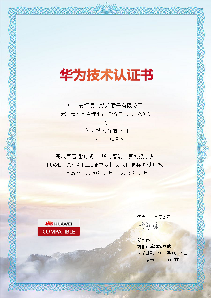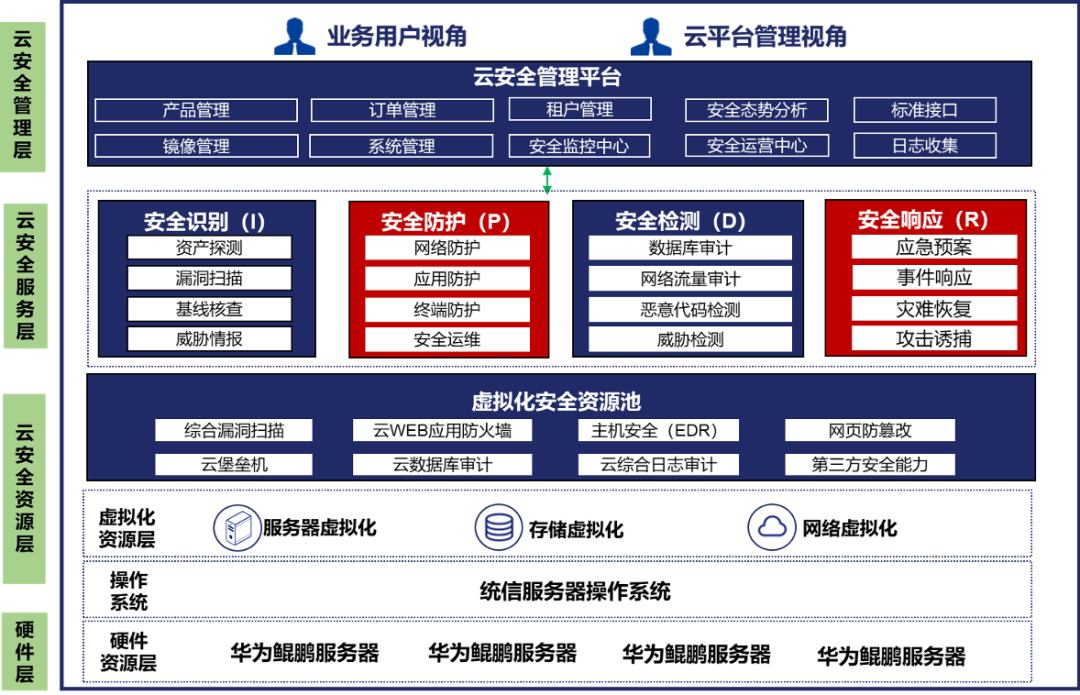 通过使用国产华为鲲鹏服务器,为上层云安全管理平台及各类虚拟化安全能力提供计算、网络、存储等基础资源。