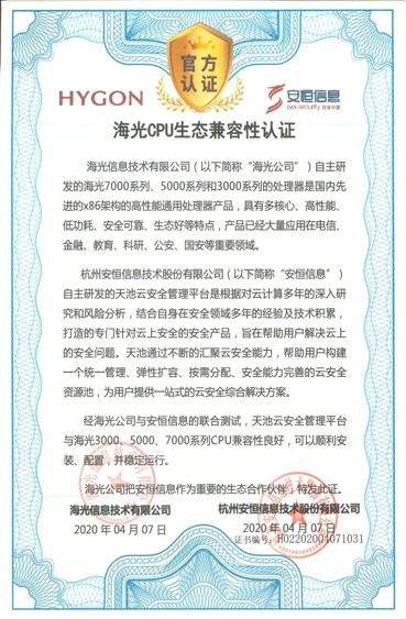 信创云网络安全解决方案全面响应信息技术应用创新号召,硬件层面,已取得与华为Taishan系列服务器(基于鲲鹏处理器)和中科可控H系列服务器(基于海光处理器)的相关兼容性测试认证。采用国产化操作系统,已取得与统信服务器操作系统的技术互认证。管理平台及安全组件均为自主研发设计,具备相关11项授权发明专利及1项软件著作权登记证书,真正从硬件到操作系统、应用实现自主可控。
