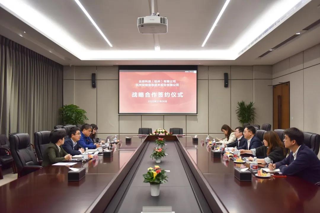 近日,云仰科技与安恒信息在杭州签署战略合作协议,将面向城市大脑、安全等领域,利用大数据、人工智能等技术和产品,推动智慧城市安全建设。
