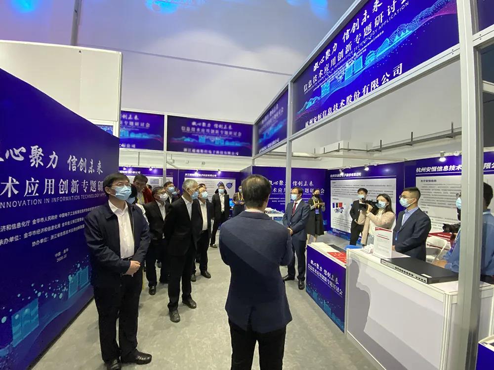 作为大会的重要成果展示,安恒信息亮相现场,工信部、浙江省委以及金华市委等领导参观了安恒信息展位,并进行了交流和探讨。