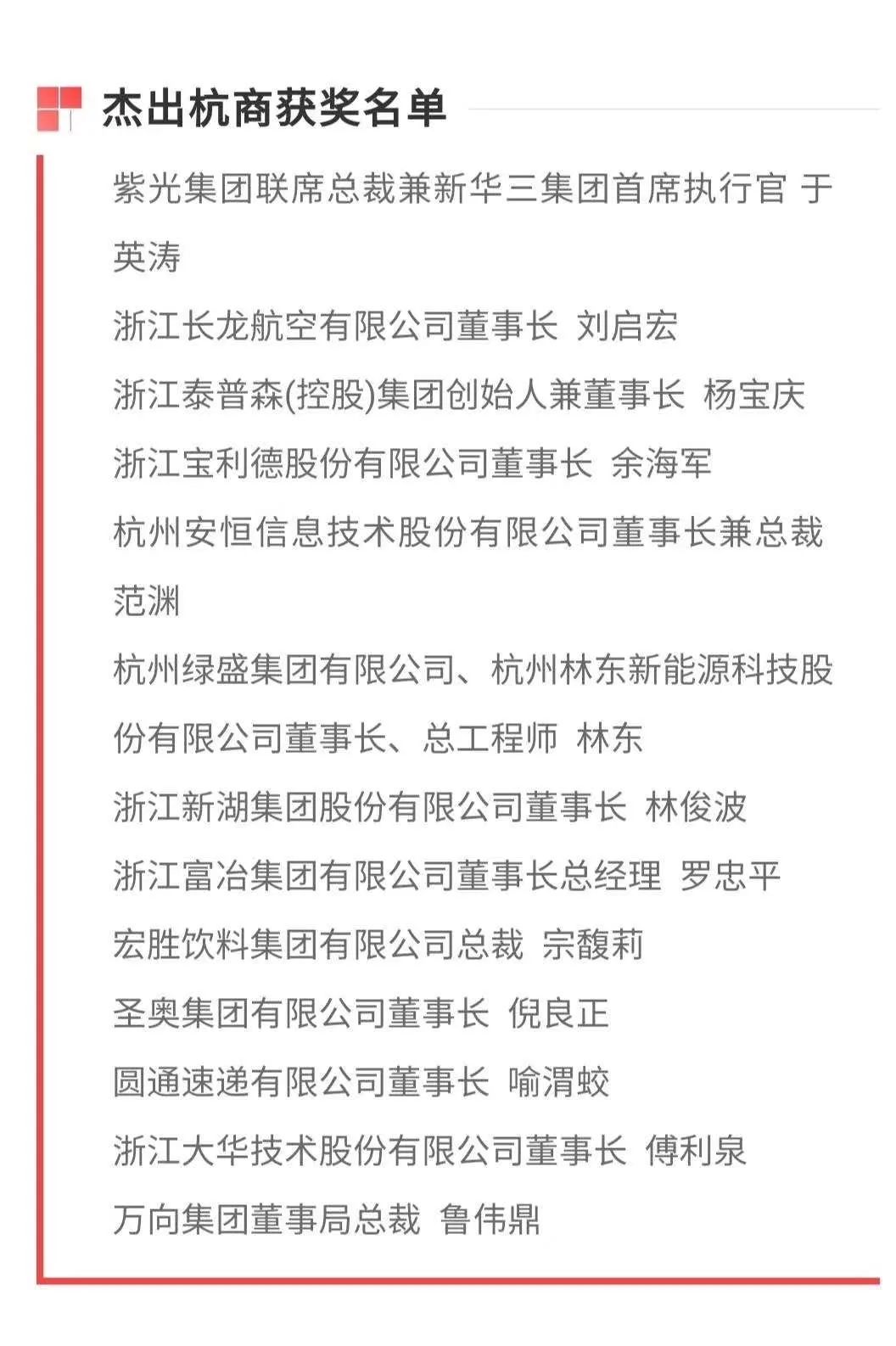 据悉,“杰出杭商”是由第四届世界杭商大会评选表彰具有代表性的杭商企业家,彰显杭商创业创新成就,展示杭商抗疫复工、敢于担当的新风采,塑造“创新杭商、开放杭商、智慧杭商、责任杭商”新形象,经过市民参与、专家评审、组委会严格审定并且确认最终名单。