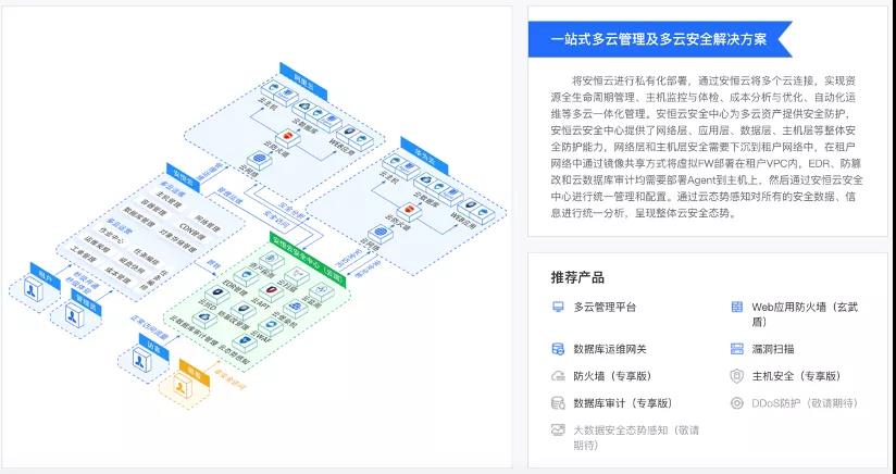 这时就需要一个多云管理平台,将分散的资源统一起来,集中进行管理。安恒信息也看到了其中的问题,一方面是多云如何进行统一的运营管理,另一方面是多云如何进行统一的安全管理。