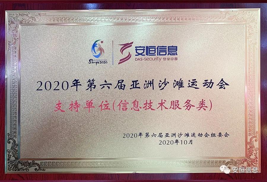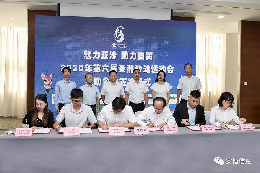 10月10日,2020年第六届亚洲沙滩运动会赞助企业签约仪式于三亚举行,安恒信息与三亚亚沙会组委会签署赞助协议——安恒信息正式成为“2020年第六届亚洲沙滩运动会支持单位(信息技术服务类)”。