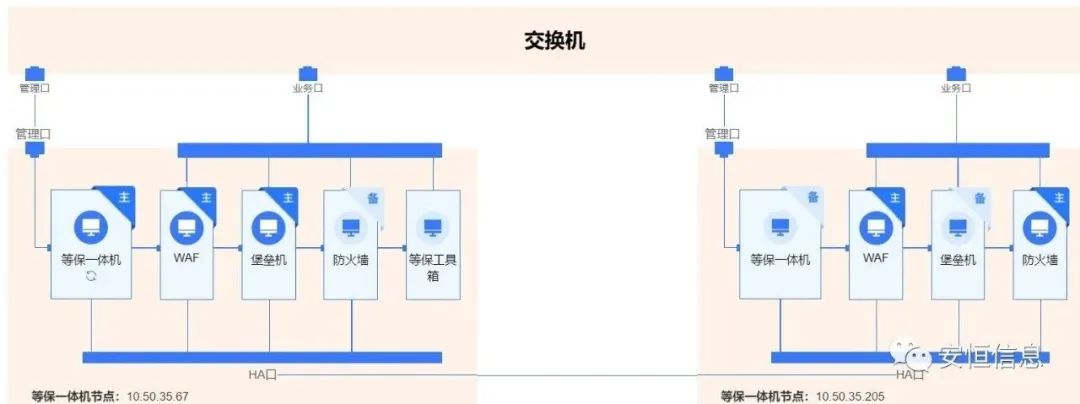 部署简单:两台天池等保一体机通过HA接口互连组成双机节点,在web界面一键开启高可用功能即可自动化生效,无需额外的复杂配置。