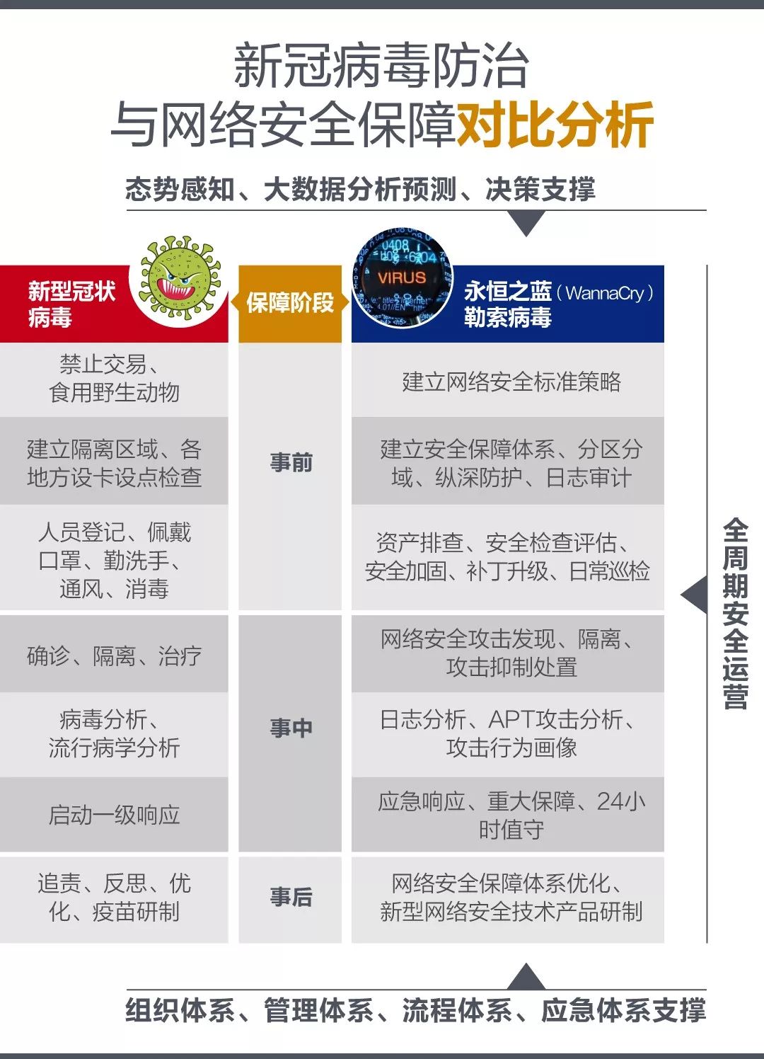 安恒信息通过将新冠病毒和网络安全(勒索病毒)进行对比分析,引出对网络安全重点工作的思考。