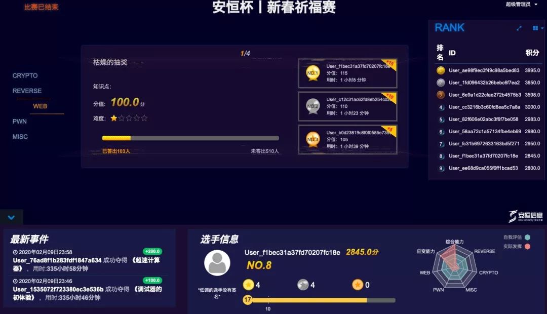 排名前100的选手都获得了平台积分奖励,可在平台兑换实体物品,并能获得安恒信息招聘绿色通道。