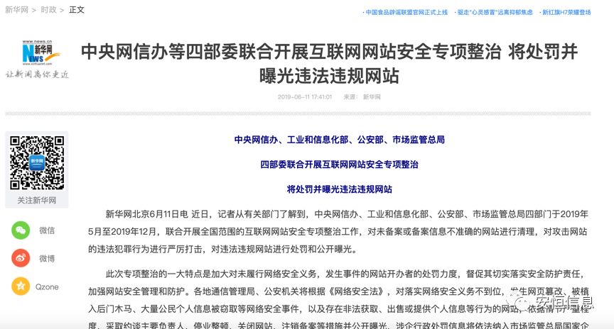“净网2019”专项行动开展以来,各省市已发生多起因不履行网络安全保护义务而受到罚款、责令限期整改等案,此次四部委联合开展专项整治工作力度更大。