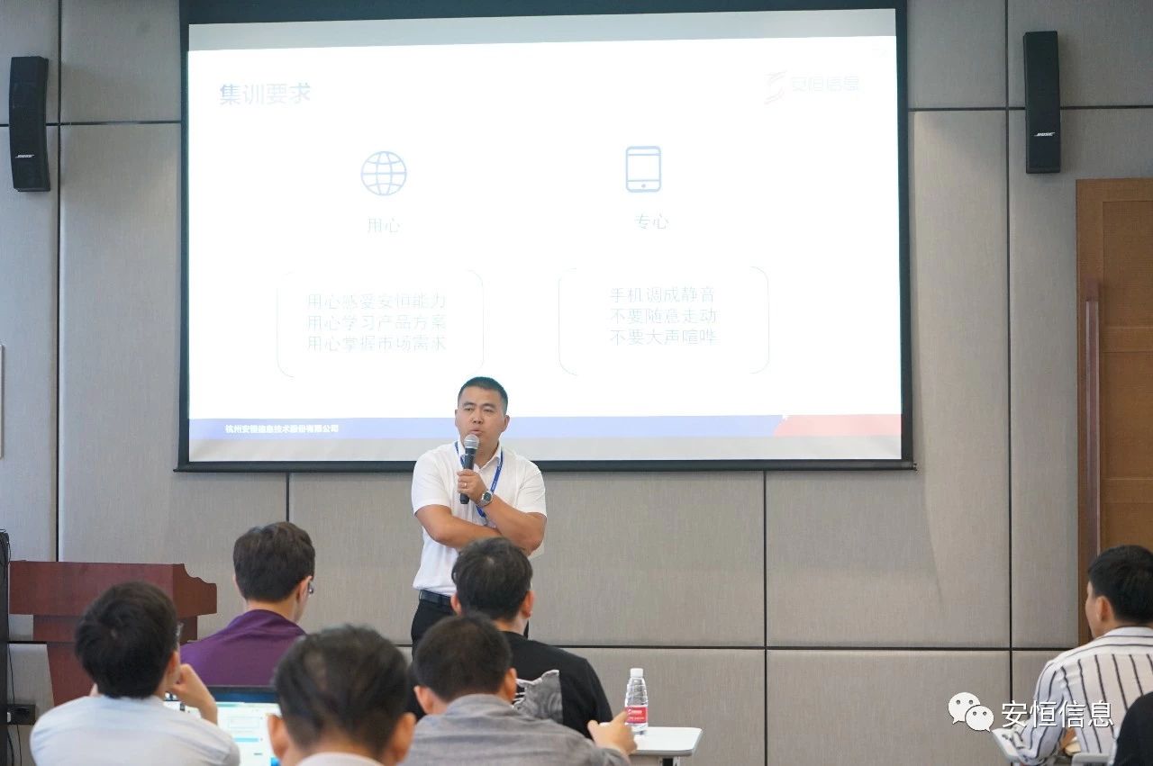 本次集训主要内容为安恒信息优势产品售前培训(包括产品原理介绍、 优势功能分析、竞品分析、选型指导及相关案例)、SMB市场解决方案培训及当前行业热点解读。29日下午的解决方案宣讲比赛,以所培训的解决方案内容作为考点,通过以赛促训的形式,进一步提高渠道工程师掌握安恒信息产品功能特点与解决方案等方面的能力。本次解决方案宣讲比赛共有6名优秀的渠道工程师脱颖而出。