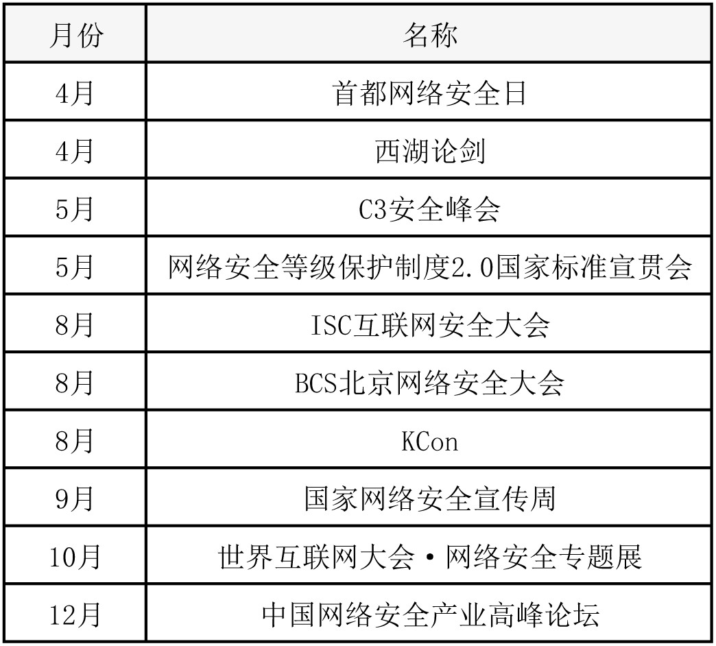 ✓数量繁多的会议活动虽然可以提升网络安全对社会的影响力、加强全社会的关注与重视,但高昂成本的投入,也成为网络安全企业较大的负担,期待今后出现更多真正给企业和社会带来更多价值的活动。