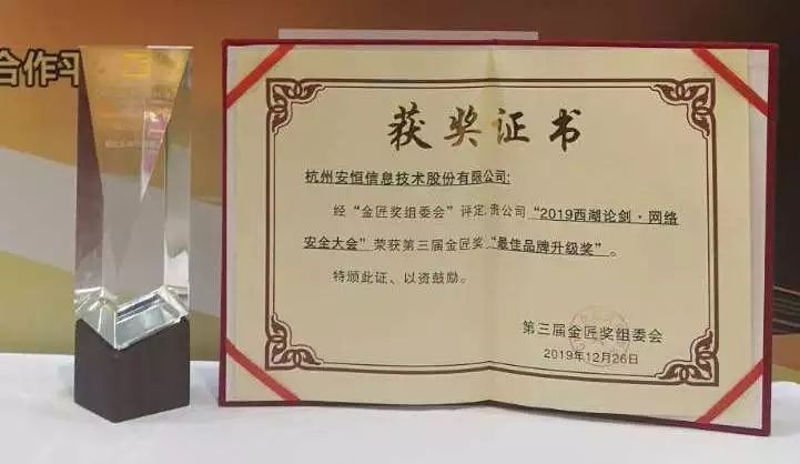 2019西湖论剑·网络安全大会荣获“金匠奖最佳品牌升级奖”