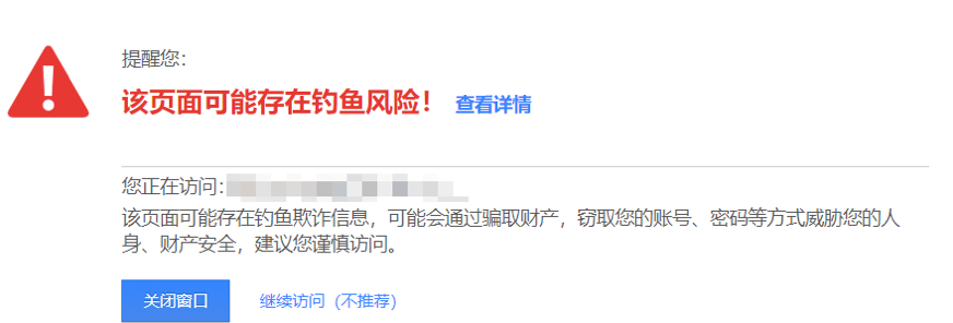 打开网页可能就会有来自网站安全中心的提示:该页面可能存在钓鱼风险!