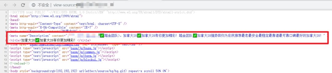 通过进一步查看网页源代码,可以确定网站首页源码已经被篡改: