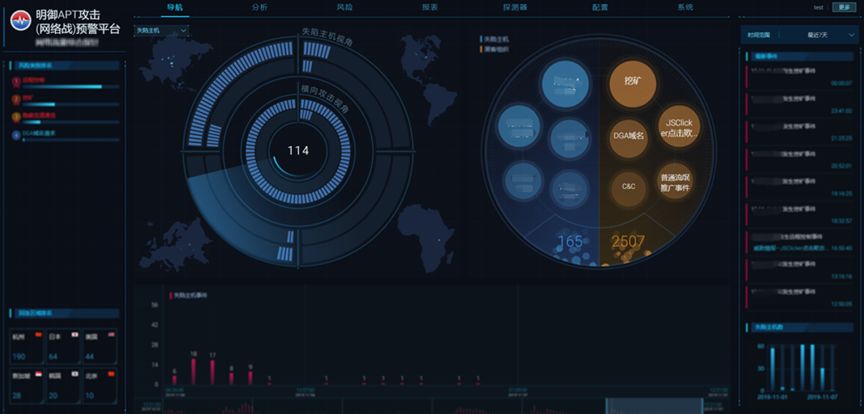 日前,安恒信息重磅发布APT攻击(网络战)预警平台新版本。在威胁分析、动态沙箱等原有核心模块的基础上不断优化,新增了可视化大屏,实现全网威胁感知、失陷主机感知、安全事件追踪溯源,让安全风险尽在眼中。