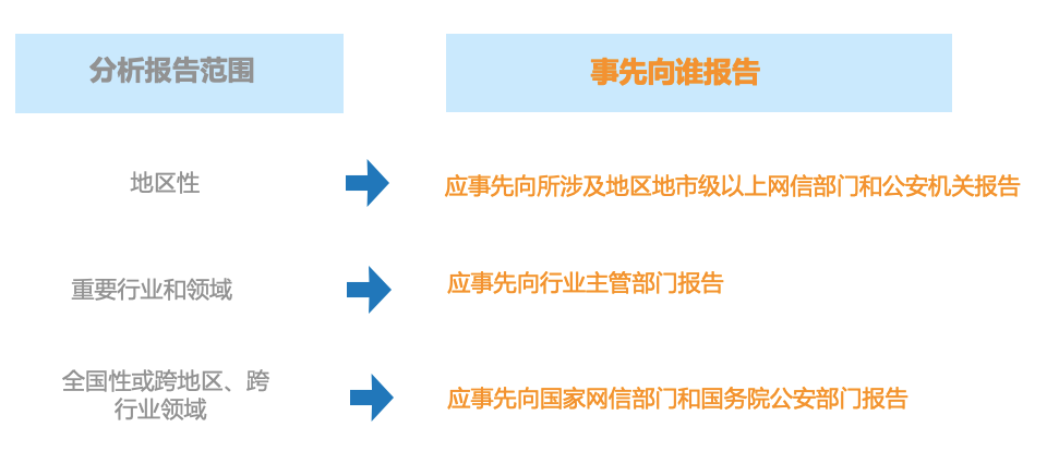 发布全国性或跨地区、跨行业领域的综合分析报告时,应事先向国家网信部门和国务院公安部门报告。