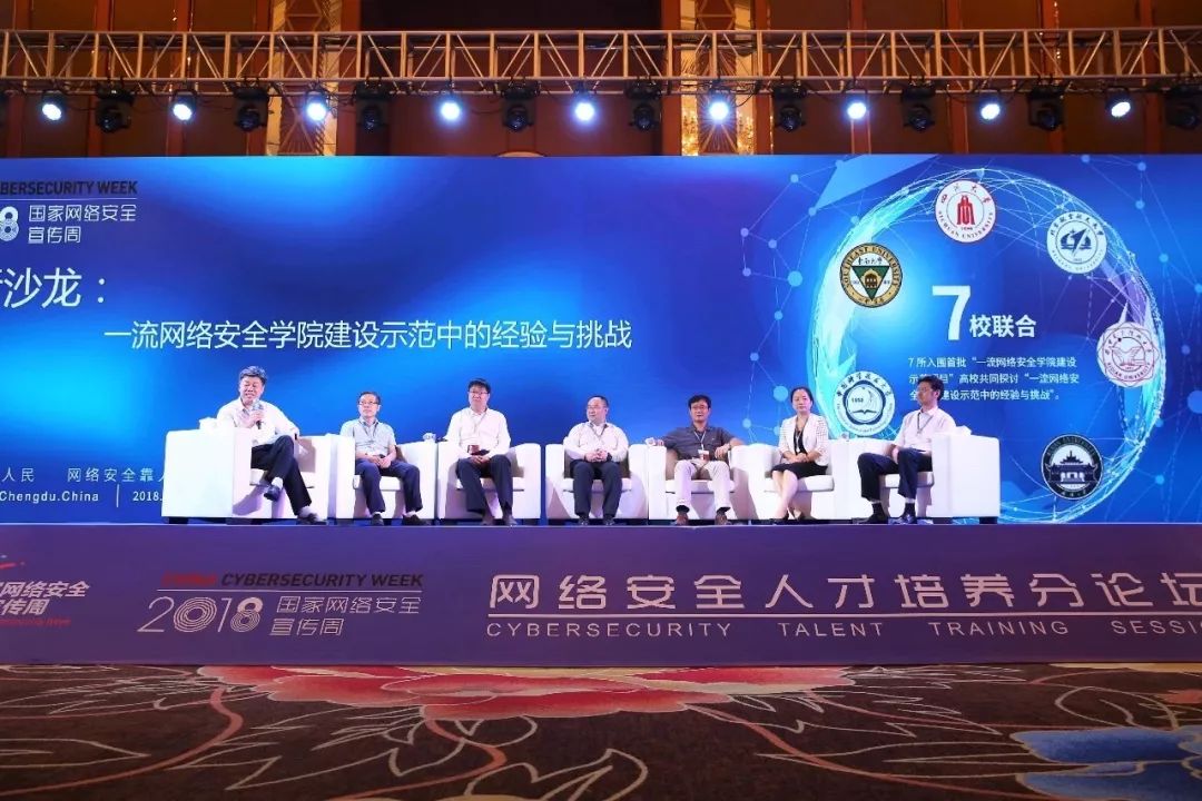 在2018年国家网络安全宣传周期间,由成都市人民政府主办,成都市人才办、安恒信息、四川大学等单位承办网络安全人才培养分论坛上,7位来自一流网络安全学院的专家学者就“一流网络安全学院建设示范中的经验与挑战”进行了深入探讨。