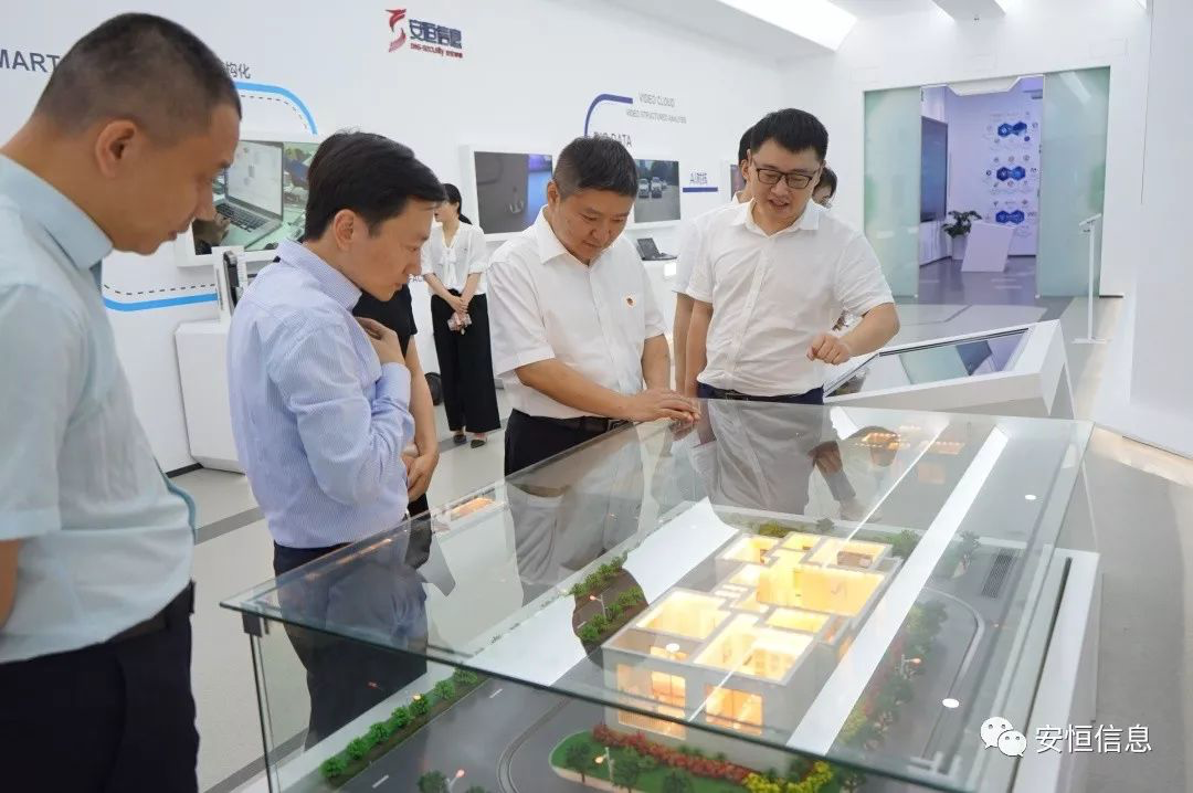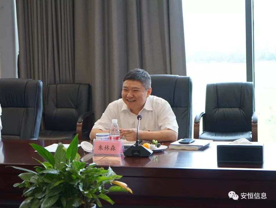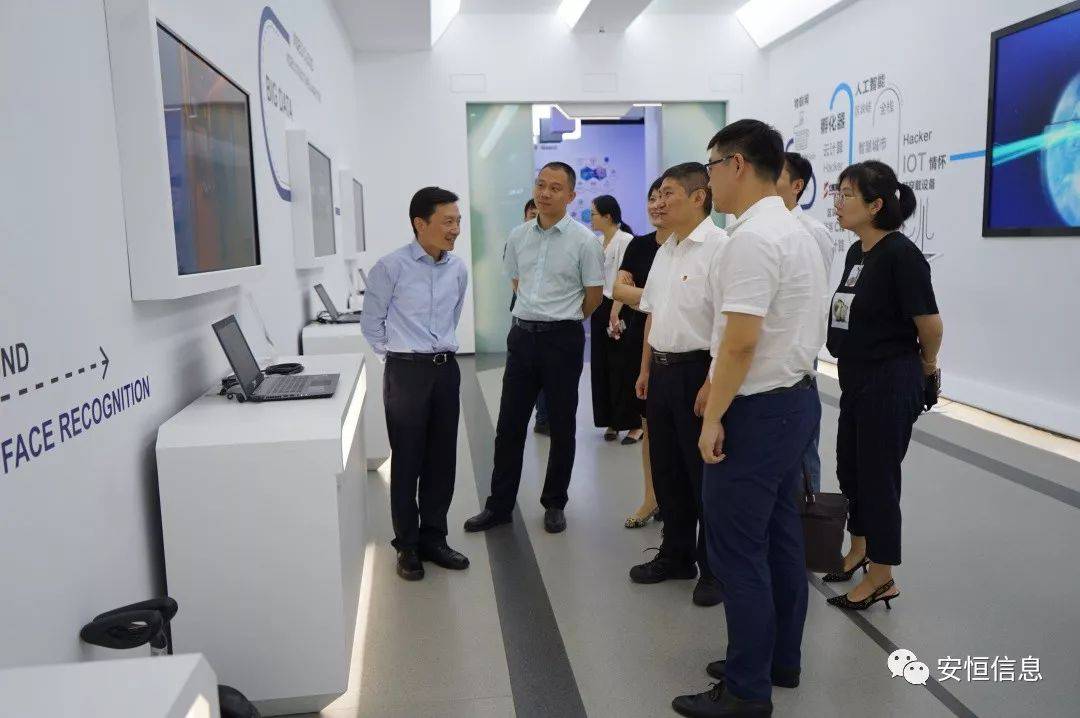 在安恒信息董事长范渊陪同下,朱林森书记一行参观了安全创新体验中心,了解安恒信息在云安全、大数据分析、态势感知、物联网等先进技术和行业应用情况。安恒信息党委书记张小孟、高级副总裁黄进等参加接待。