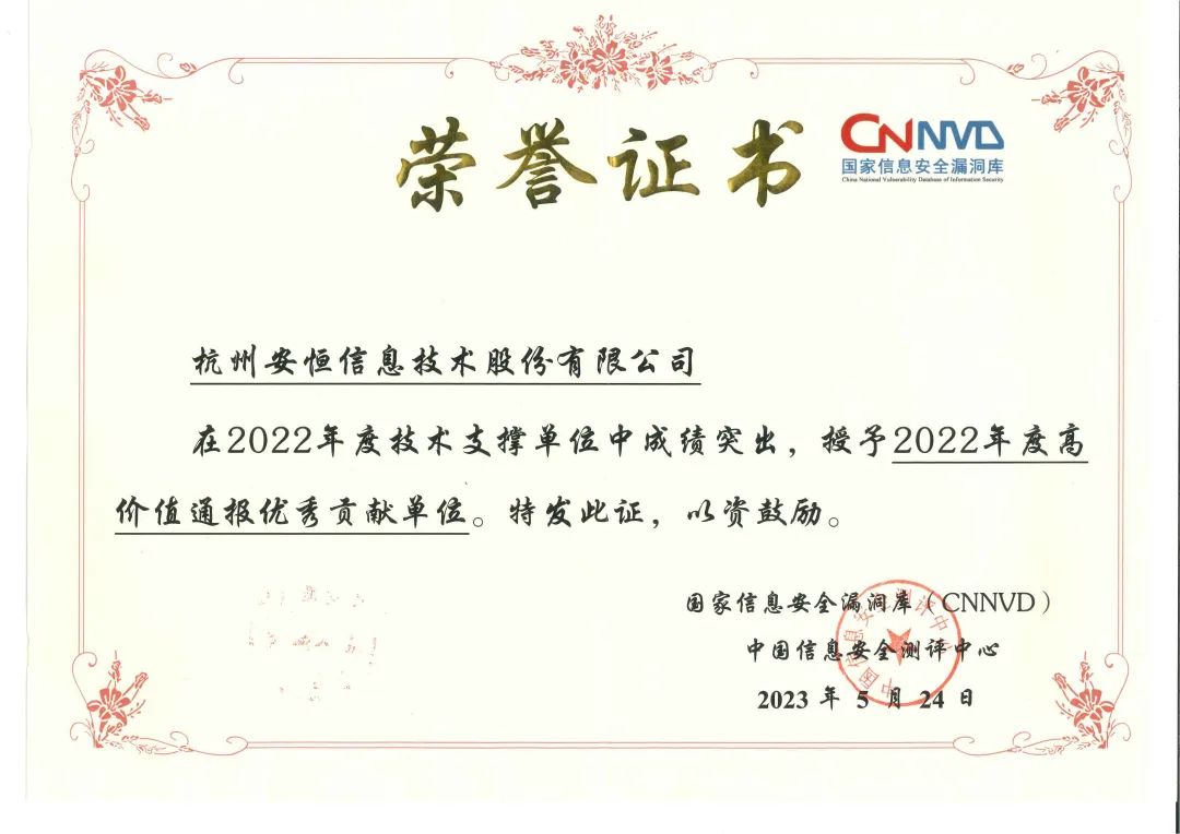 大满贯!安恒信息获CNNVD2022年度五项殊荣
