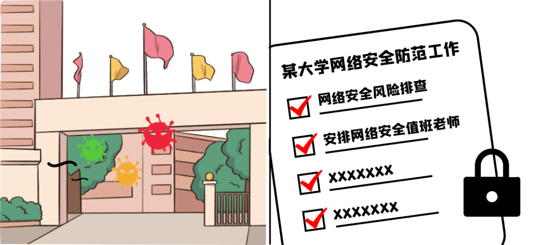 面对黑客的攻势,学校也有所防备,暑假前夕,学校会安排暑假期间的网络安全保障工作,如网络安全风险排查,安排值班老师等,为网络安全“层层加锁”。