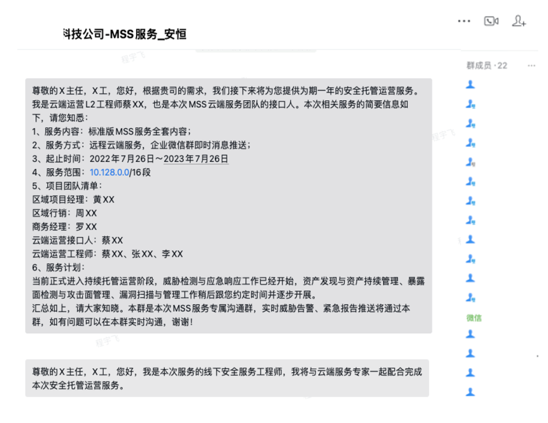 服务期间,三级云端安全专家团队7*24小时值守,远程协助值班老师完成安全威胁的监控、研判、分析工作。