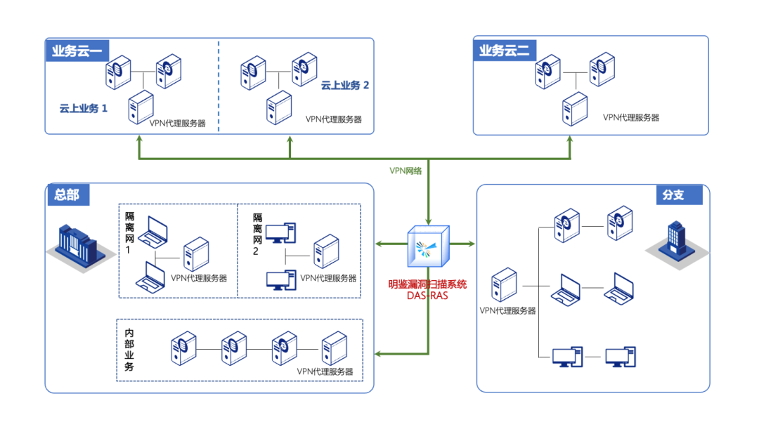 明鉴漏洞扫描系统可帮助客户快速搭建直达目标网段的IPsec VPN隧道,由VPN代理服务器实现流量转发,从而顺利完成扫描任务。帮助客户解决云上/网络隔离等扫描器与目标网络不通问题,有效降低内部多隔离网环境下需要部署多扫描节点方案的成本。
